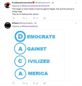 James Woods, however, uses a screenshot of a man with a “Make America México Again” who his flipping the viewer off (supposedly Trump or his racist