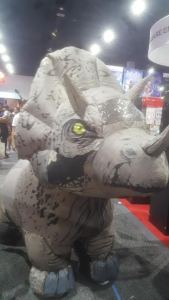 SyFy made a big impression on the crowds inside and out of the convention center. Their black and neon green mystery boxes intrigued fans in the verge of a freebie frenzy because when you see someone with something you might want, you ask. SyFy sponsored karaoke buses, including one with cast members from “Krypton,” bingo buses and the human claw. Based at the New Children’s Museum, SyFy made everyone who waited through the lines winners; The boxes contained a Funko figure and smaller item and a t-shirt. The human claw lifted the helmeted participant in a harness slowly up and then across and over a shallow pit filled with foam cubes and the plethora of mystery boxes. Working in a harness like some actors and stunt people do isn’t as easy as it looks!