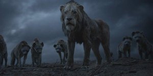 In the live-action “The Lion King,” the lions and hyenas do not have eyebrows. In the animated feature, Simba clearly does. Pumba does not, but he does have a brow that almost acts as one and Timon does. Scar, not only has eyebrows, he has a smoky eye–the kind usually reserved for women in live-action movies. So does the adult Simba, but he has large, round eyes while Scar has small, slit eyes. That signals sinister in the animated feature, but it’s the worn, beaten up visage, the lack of majestic mane that signals the evil in the live action.