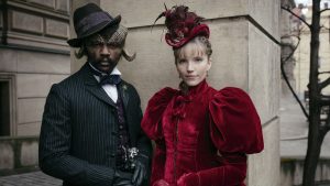 Imogen doesn’t realize that her brother, Ezra has gambled their whole fortune on the ship that sank. She does eagerly go out to meet the new neighbor who turns out to be a rich black puck, Agreus Astrayon (David Gyasi). Agreus knows of the Spurnrose family; Ezra and and Imogen’s father was a well-known watchmaker. Shocked that Agreus is the master and not the servant, she and Ezra awkwardly leave.