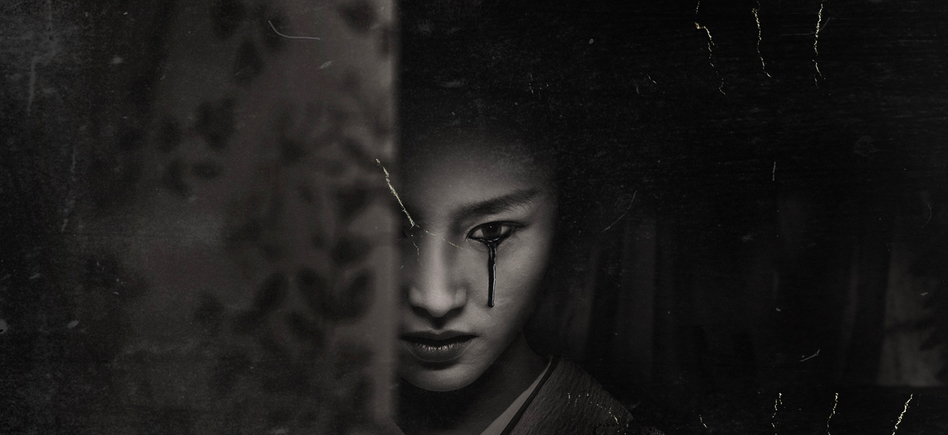 Later, dressed in white, Yūko stands on the red bridge and looks in the pond there are koi under the red bridge, but she imagines the body of a girl in a red kimono. At one point, she mistakenly runs into the sand and sinks, with dark black hands in a red kimono reaching out for her and pull her down. The woman saves her, and Yūko finds herself again, waking up in the room. She wonders, “Where am I?” and then, “What is this cursed place?”
