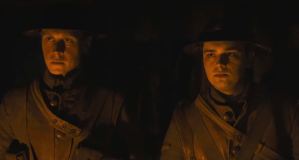 Blake is chosen because he reads maps well. He’s determined and ready to roll while the more jaded Schofield wants to wait until dark before they enter no man’s land. “The last time I was told the Germans were gone, it didn’t end well,” Schofield says. He’s already gotten a medal, which he calls just a bit of tin. Blake reminds him, there’s ribbon. “Nothing like a scrap of ribbon to cheer a widow,” Schofield replies. He traded his medal for some wine because he was thirsty. He has a way of finding food where there is little.