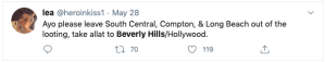 Black Lives Matter-LA did mention looting and vandalism. That usage of “we” comes off as arrogant in the face of large scale damage.