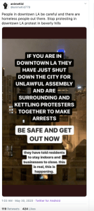 Via Twitter, the LAPD, even after the incident on the 101, was supportive and asked that the protests be safe and legal.