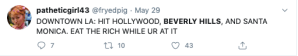 These areas were targeted by design according to Abdullah. She told the LA-ist, “We’ve been very deliberate in saying that the violence and pain and hurt that’s experienced on a daily basis by black folks at the hands of a repressive system should also be visited upon, to a degree, to those who think that they can just retreat to white affluence.”