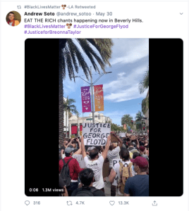 The chanting of “Eat the Rich” or “F*ck Police” isn’t meant to inspire a working relationship with the LAPD or the residents of these areas–rich or working class. Further the actual goal of the Black Lives Matter-LA is to “defund” the police and implement the budget they worked out with other organizations.