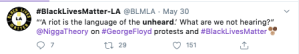 Someone asked: “When will the organization at least condemn the looting of #MinorityOwnedBusinesses?” That’s a reasonable question and one of the public relations mistakes Black Lives Matters-LA made.
