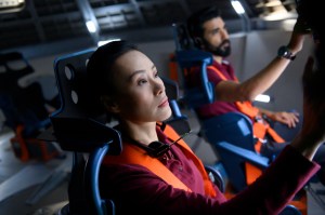 Here we get a Rashomon scenario. The overall mission supervisor, Darlene Cole (Gabrielle Rose) talks via a monitor about the alert less than 10 hours from touchdown on the moon. Lu and Misha tell different stories, but their assessment is the same: Emma isn’t fit to be their leader. Misha says she froze. Lu claims Emma was “hysterical and reckless.”