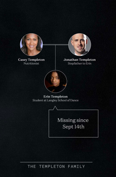 Erin Templeton is a student at Lindberg Academy. Her mother, Casey, is a nutritionist, and her father is not known, but her stepfather is Jonathan. Erin has been missing since 14 September 2020. Her cellphone is (858) 762-3739