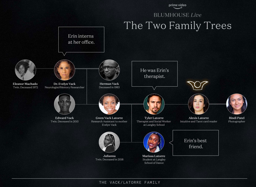 Erin spent time with the Latorre family who lives in Blumhouse. Erin works as a lab intern for Dr. Evelyn Vack and Gwen Latorre.