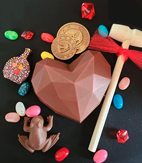 The Truffle Cottage has a 3″ x 1.75″ Breakable Harry Potter chocolate heart mean to break ($14.95). You have a choice of any of the four houses (Slytherin, Griffindor, Hufflepuff or Ravenclaw. You can even get a sorting hat ($10 in either dark or milk chocolate).