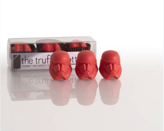 If you are on the dark side and seeing red, try the Red Sith Trooper which has three truffles, each with a creamy milk chocolate ganache and chunks of almonds ($13.20).