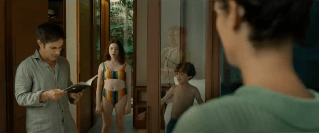 “Old” is based on a French language-Swiss graphic novel “Sandcastle” by Pierre Oscar Levy which I had not seen nor read. However, M. Night Shyamalan has written, directed and produced the film and the film gives a lot of attention to the female body, including a nude woman seen from the back who later becomes a nude corpse, but he also sexualizes the bodies of the supposed young teenaged women.
