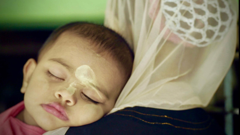 During the delivery the midwife wears a face mask and yet is seems like meager efforts compared to what a North American pregnant woman might expect. Yet we’re clearly shown how different every day life is. Many of the roads are unpaved. People are riding bicycles. Girls fetch water from a spring and lug it back home in pots. Chickens walk around the house. The mother separates vegetables while asking her son if he went to Arabic school and how to say things in Rakhine.