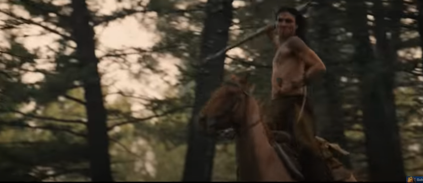 Because we only see Taabe on foot during the film, when he does have a battle using a horse (seen also in the trailer), it is jarring. It becomes obvious that Taabe is a skilled horseback warrior. Why is he then on foot, especially for the search party when Naru goes missing? If the other Comanche men have horses, then why aren’t they following the buffalo and why don’t they discover the slaughter of so many from signs like the circling carrion birds? Why aren’t those carrion-loving birds eating, it’s not like they have to wait to pull up a space. No other animal is there. Further, why aren’t the Comanche men with horses taking the opportunity to steal horses off of the voyageurs?