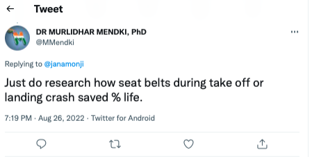 Someone on Twitter asserted: “Just do research how seat belts during take off or landing crash saved % life.” I did.