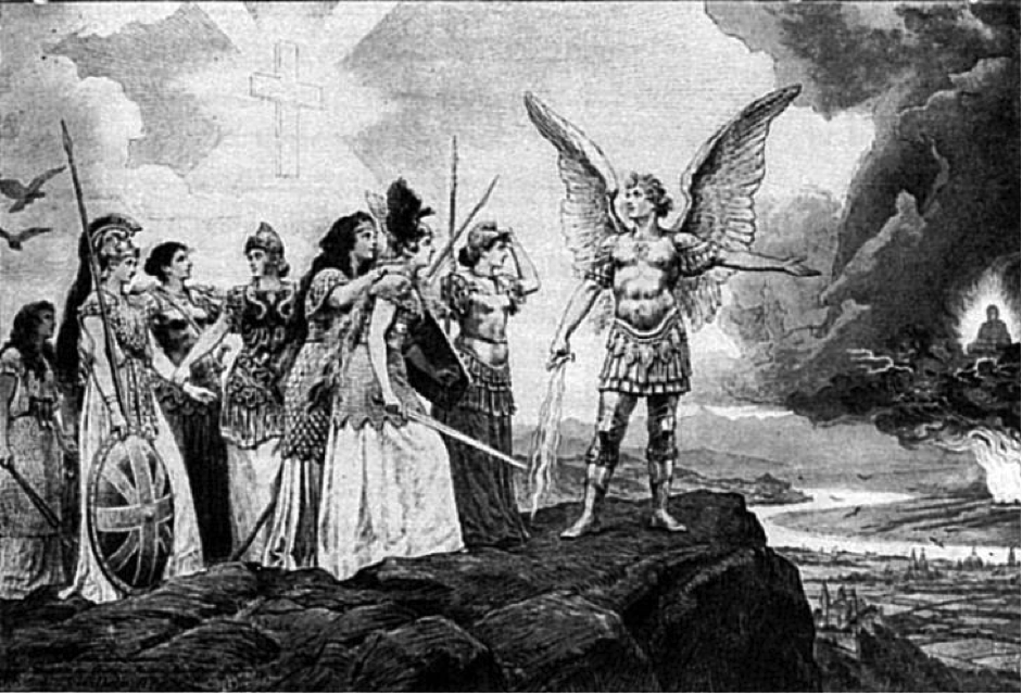 I know less about Hindu history and racism, but do know that Buddha was specifically use for racist propaganda. Kaiser Wilhelm II used this 1895 Hermann Knackfuss lithograph “Peoples of Europe, Guard Your Most Sacred Possessions“ to elicit racist Yellow Peril hysteria, but also as geopolitical justification for European colonialism in China.