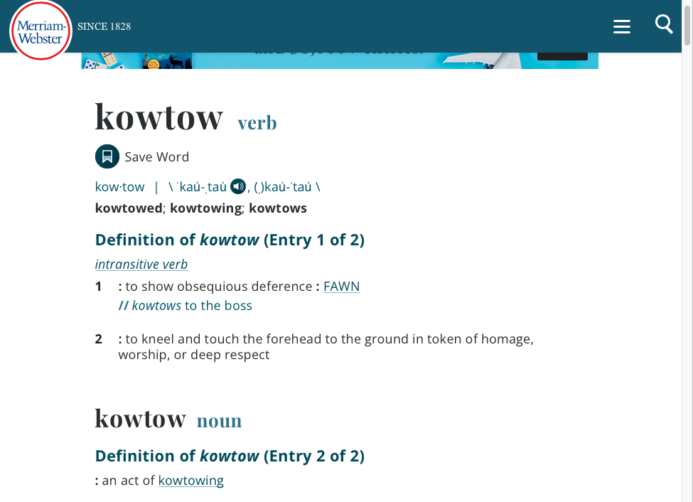 - Kowtow