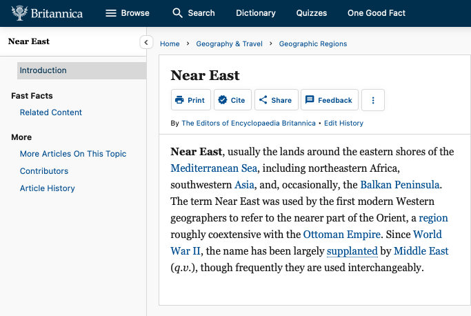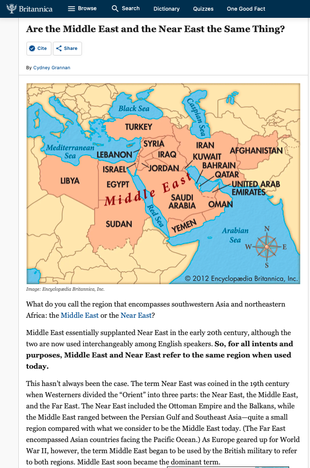 Even some of the current terms we use come from this broad sweeping categorization: Near East versus Middle East.