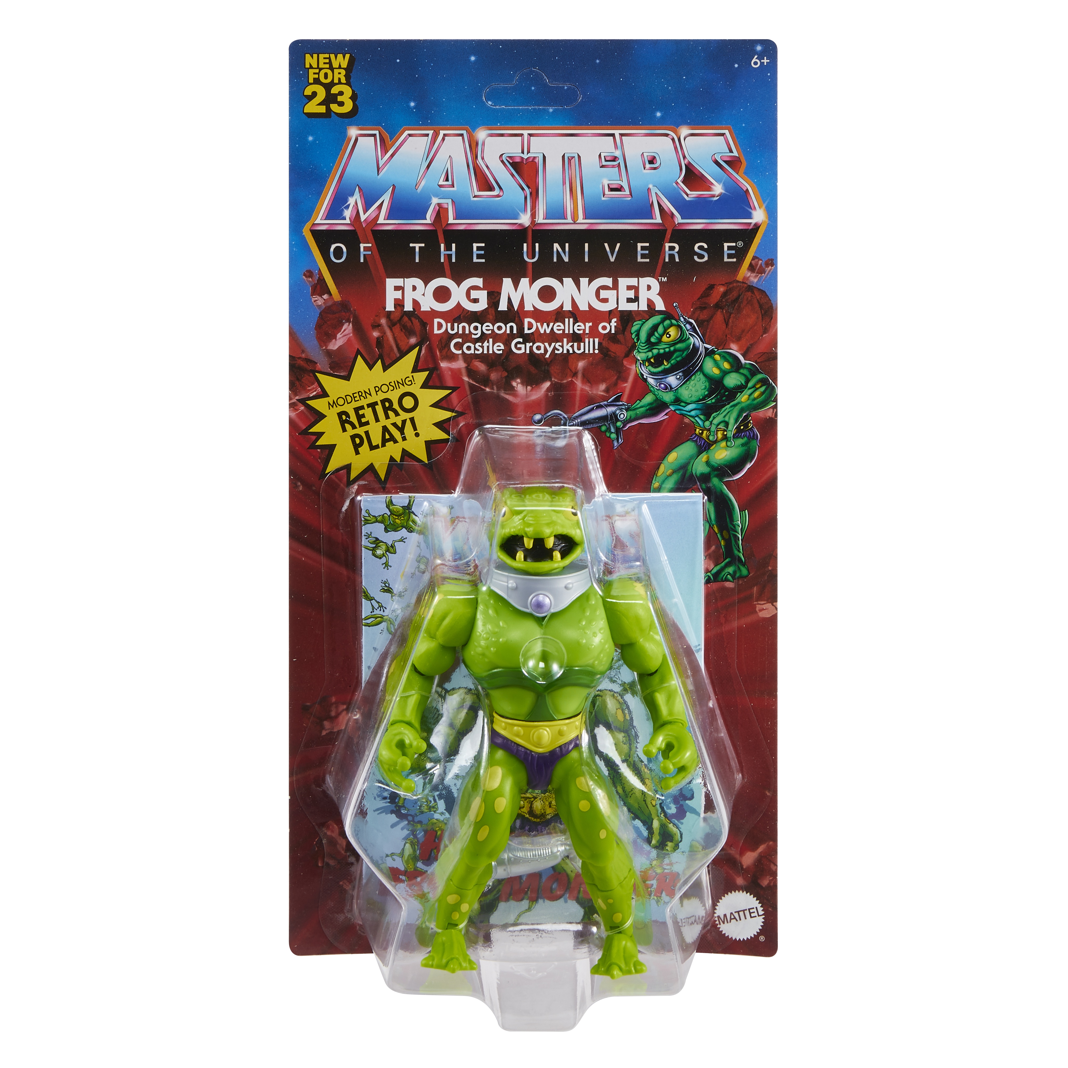 Another Spring 2023 release will be HKM82 Origins Frog Monger Figure through Mattel Creations ($18). Frog Monger was first introduced into MOTU in the 1980s as a label sticker for the Castle Grayskull. Fan demand resulted in this never-done-before Origins character becoming a 5.5″ scale figure with 16 points of articulation. The figure comes with a blaster weapon and a backpack accessory alongside in mini comic in package.