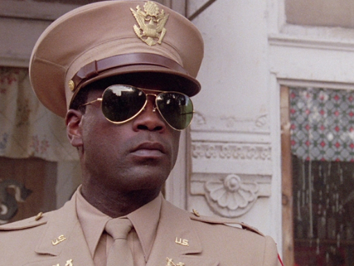 “A Soldier’s Story” opens up with the focus on a woman (Patty LaBelle as Big Mary). She’s not important to the story, but her voice and the lyrics she sings are. The film visually indicates how dangerous, how foolhardy it was in this Louisiana town to be both African American and drunk in public as we follow a drunk African American officer, Sergeant Vernon Waters (Adolph Caesar), staggering down the sidewalk. He pass a bench for White people and another for “colored.” The people we see have segregated themselves. Waters exclaims, “They still hate you!” before he’s shot in a dark wooded area by an unseen assailant. Unchanged: “A Soldier’s Story” opens up with the focus on a woman (Patty LaBelle as Big Mary). She’s not important to the story, but her voice and the lyrics she sings are. The film visually indicates how dangerous, how foolhardy it was in this Louisiana town to be both African American and drunk in public as we follow a drunk African American officer, Sergeant Vernon Waters (Adolph Caesar), staggering down the sidewalk. He pass a bench for White people and another for “colored.” The people we see have segregated themselves. Waters exclaims, “They still hate you!” before he’s shot in a dark wooded area by an unseen assailant.
