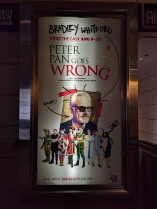 The immersive bits of theater were already afoot when I arrived almost an hour early. Members of the Cornley Youth Theatre Company were out and about. Their Peter Pan (Greg Tannahill as Jonathan Harris) and Tinker Bell (Nancy Zamit as Annie Twilloil) are soaking up their audience adulation pre-performance. Inside, audience members might be asked to help the men who were working on some technical problems. You’ll want to read the double program–the one by the Conley Youth Theatre and other other by the Mischief Production. From the Conley Youth Theatre program notes, you’ll learn of the sad fate of one cast member who had an untimely demise due to a clock.