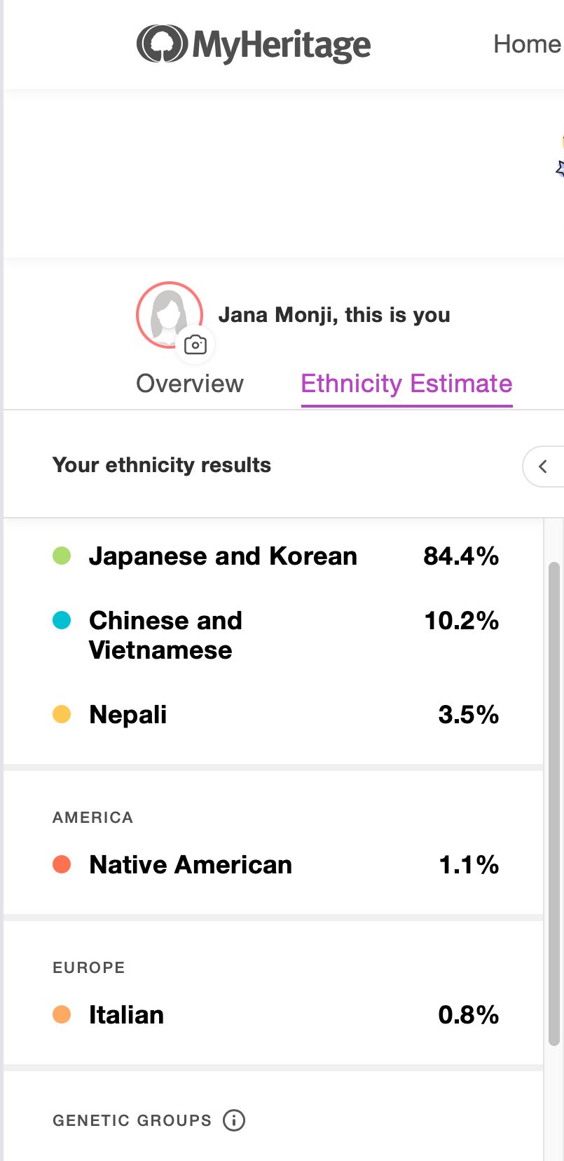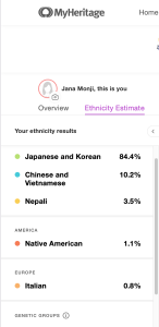 My husband’s original results were Japanese and Korean and Chinese and Vietnamese with a small percentage of Native American.