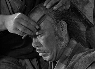 Back in the village, Manzō (Kamatari Fujiwara) decides he must protect his daughter, Shino (Keiko Tsushima). She’s washing her long hair when he attacks her, cutting off her hair. She then is disguised as a boy. Except for the older women and young children, the other women all go into hiding. In this film, it is made clear that the threat to women is very real.