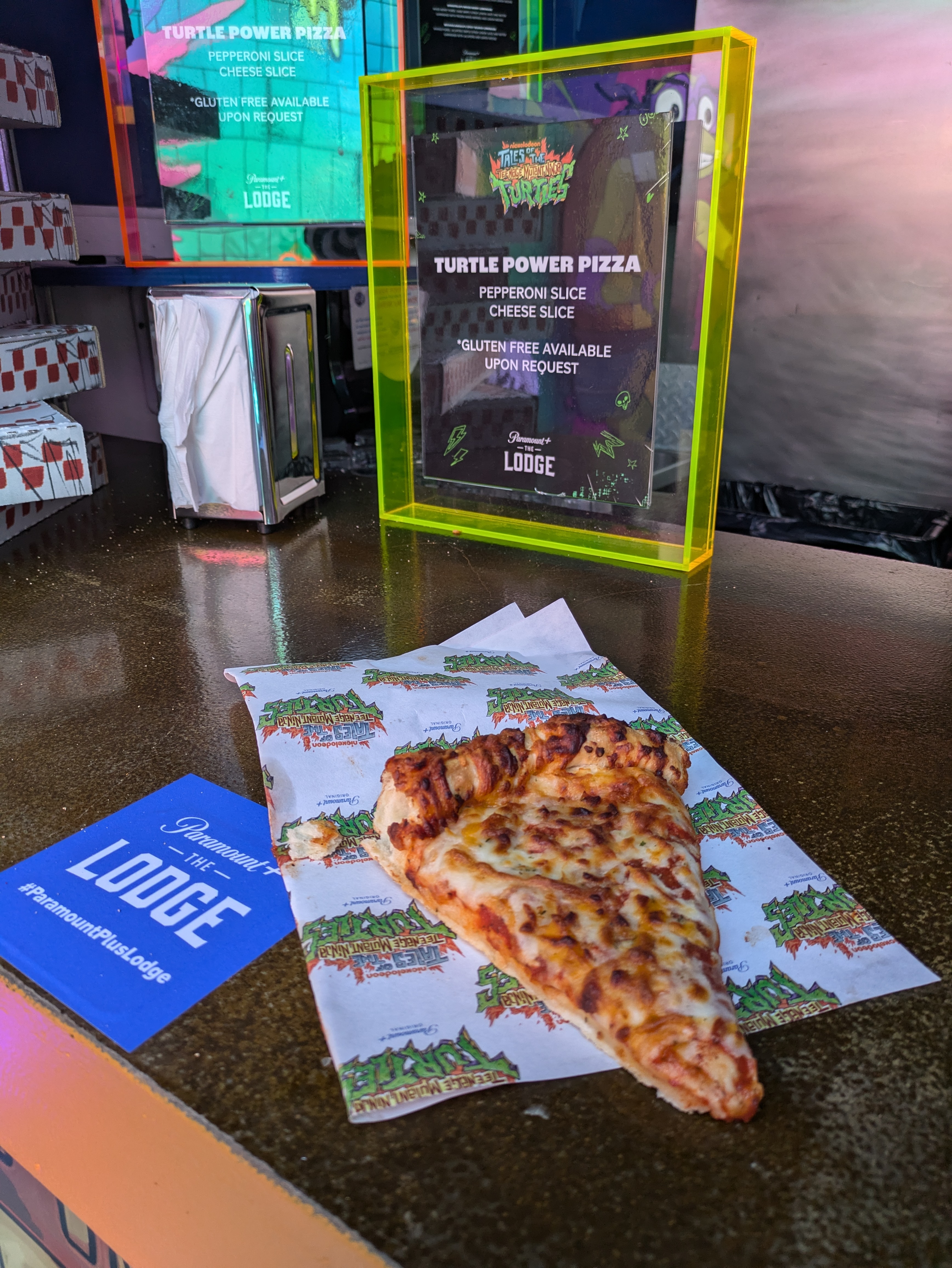 The best plan for this activation was to decide what took the most time and get in line for it. So while waiting in line to create a custom Star Trek t-shirt using a touch-screen tablet, we used the line-buddy system. I picked also picked up a slice at the Turtle Power Pizza: cheese or pepperoni. Themed drinks were also available.