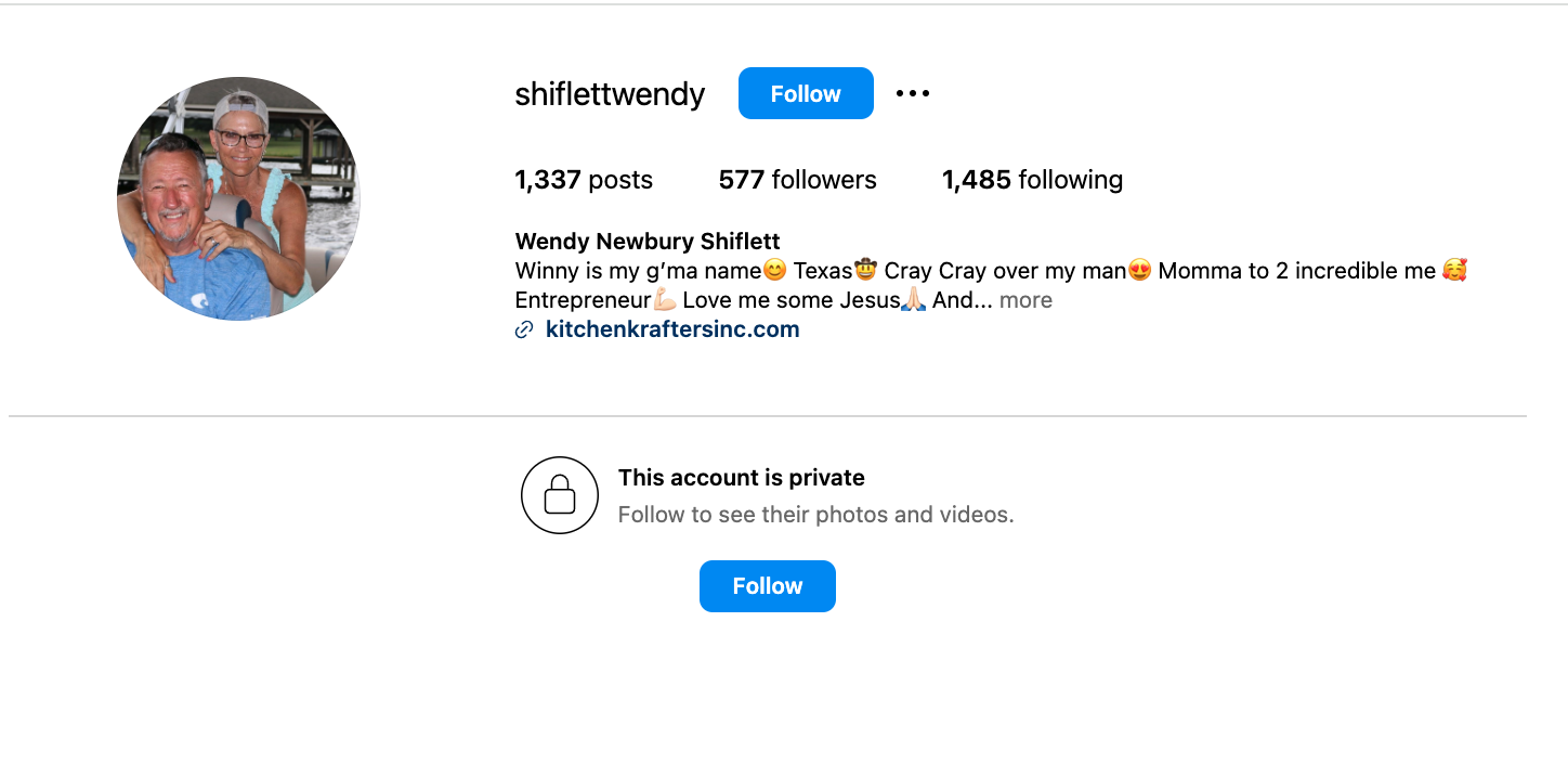 Wendy Newbury ShiflettWinny is my g’ma name😊 Texas🤠 Cray Cray over my man😍 Momma to 2 incredible me 🥰 Entrepreneur💪🏻 Love me some Jesus🙏🏻 And dogs🐾 Business owner👩🏼💻