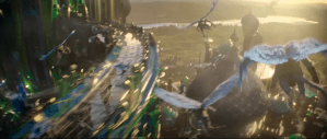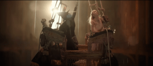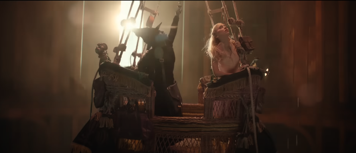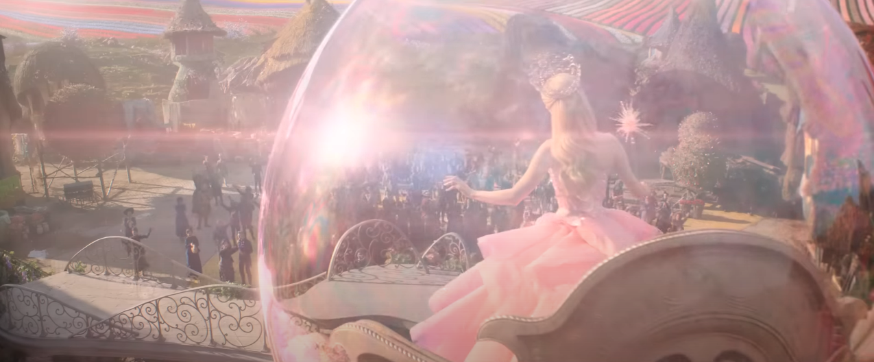 Erivo and Grande-Butera’s voices blend beautifully. While some have commented that Grande is imitating Chenoweth on the “Popular” sing-along video released for the film on YouTube, I know from watching Jimmy Fallon that if Grande wanted to mimic Chenoweth, she could do it. Yet that isn’t what she’s doing here in the film. For “Popular,” Grande-Butera gives a lighter, airier vocal styling than Chenoweth’s. That fits with her characterization of Galinda. Chenoweth’s Galinda had an irritating voice and you don’t really believe her when she sings that she’s going to teach Elphaba to be good at sports. It’s an empty promise. With Grande-Butera’s athletic swinging from the light fixtures and her slim hard figure, you don’t doubt it for a moment.