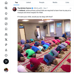 In 30 December 2024, someone under the pseudonym “God Save Great Britain” tweeted a dire warning about schools in Holland. The photo is unattributed, but the claim is clearly alarmist.
