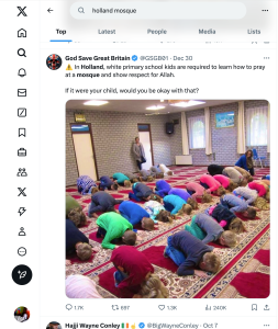 In 2016, the British Daily Mail reported that “angry parents have demanded a primary school in Holland changes its curriculum after a video showing children learning how to pray in a mosque emerged.”