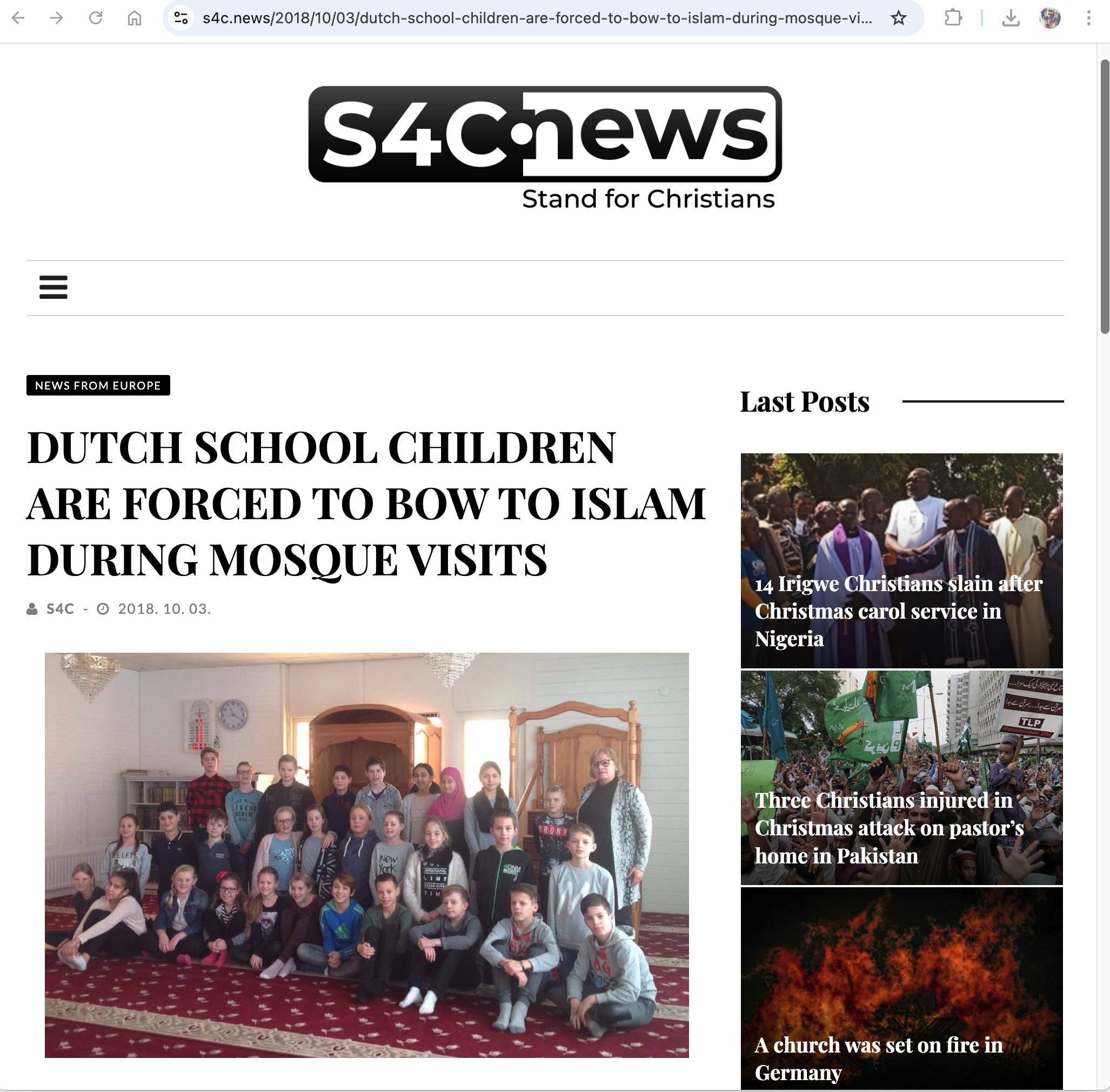 The article also notes: “In July angry parents slammed officials after discovering in a video that a class of primary school children at a Catholic school in the town of Dongen visited a mosque in Rotterdam as part of their school curriculum.”