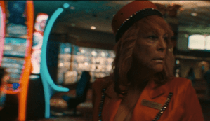 There’s a moment when Jamie Lee Curtis’ Annette, frustrated that she’s getting shorter hours in favor of younger cocktail waitresses, gets drunk and begins dancing. People who have followed Jamie Lee Curtis’ career will remember her in her striptease dance sequence in the 1994 action comedy film “True Lies” or as a fitness instructor in the 1985 film “Perfect.” In the 1980s, it might have been hard to imagine Curtis as the grouchy IRS inspector Deirdre in “Everything Everywhere All at Once.” Curtis, appearing with outdated white-frosted eye shadow and an unflattering cocktail waitress uniform is unflinchingly brave in her portrayal of Shelly’s potential future.