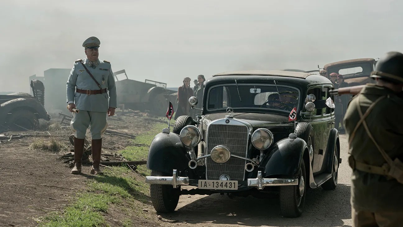 The film begins in what was Nazi Germany. A US soldier pees on a symbol of the Nazis who have been defeated as downtrodden people trudge along a road when a black luxury car annoyingly beeps to lear its way. The soldiers demand the people get out. Göring surrenders (Russell Crowe), but this was part of a plan. What isn’t clear in the film but later alluded to is that Göring preferred to surrender to the US rather than the Soviets and prior to the death of Hitler, Göring’s rival Martin Bormann had convinced Hitler that Göring was attempting to take over. Göring had been under house arrest, first in Obersalzberg (in Bavaria, Germany) and then in Mautenerdorf (in what is now Austria). In the film, the arrogant and well-dressed Göring was taken into custody near Radstadt (Austria) while fleeing with his second wife, Emmy Göring (Lotte Verbeek) and his only child, daughter, Edda (Fleur Bremmer).