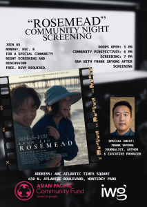 The film is very much a community-based production, based on Frank Shyong’s article. There will be a free public screening in Monterey Park that Shyong will attend on 8 December 2025 (Monday). The program begins at 6 p.m. UPDATE: Reservations are now closed. Limit was reached.
