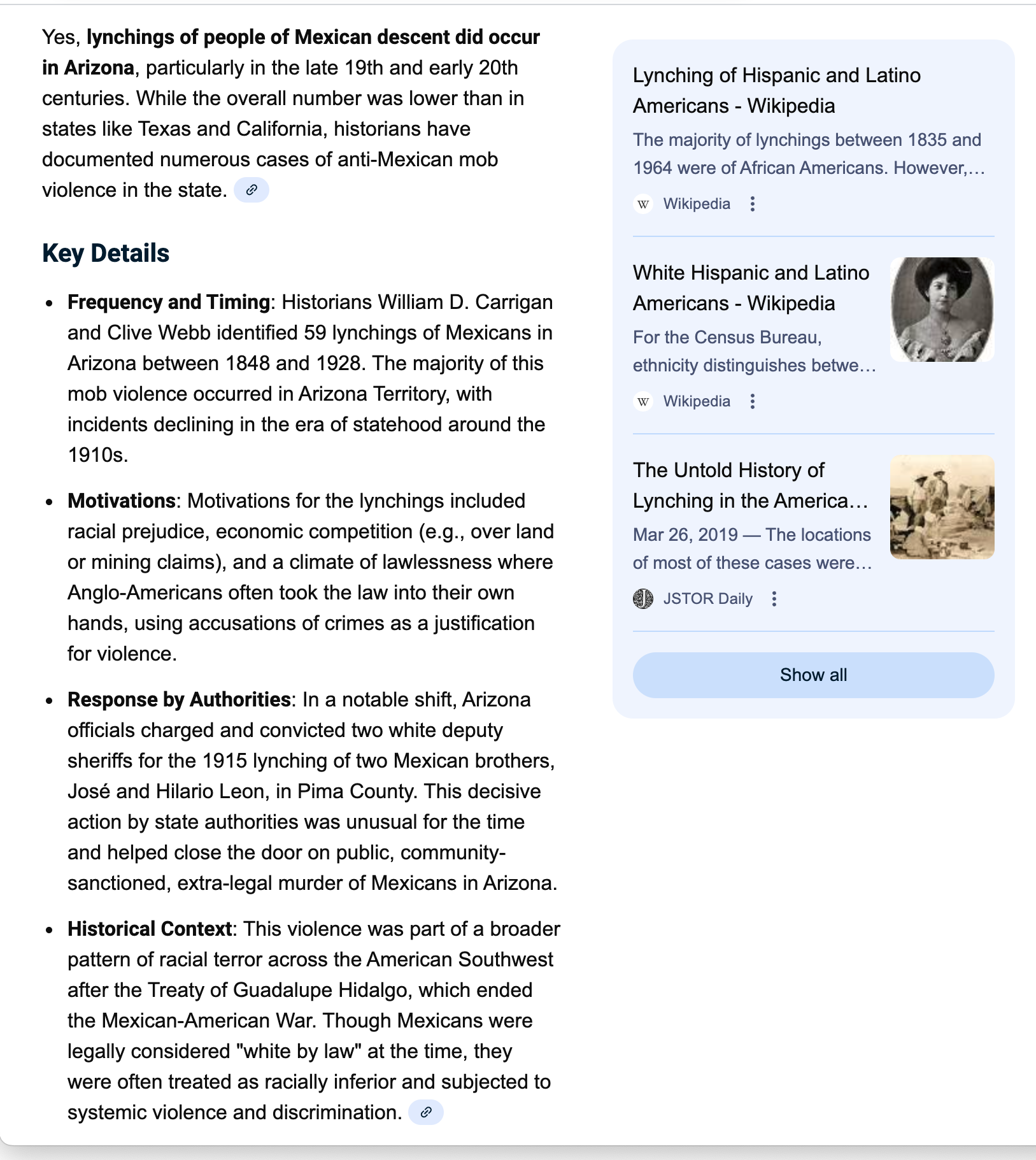 I did quick searches for Arizona, Maine, Nevada, South Dakota, Vermont and Wisconsin for Asian and Mexican lynchings.