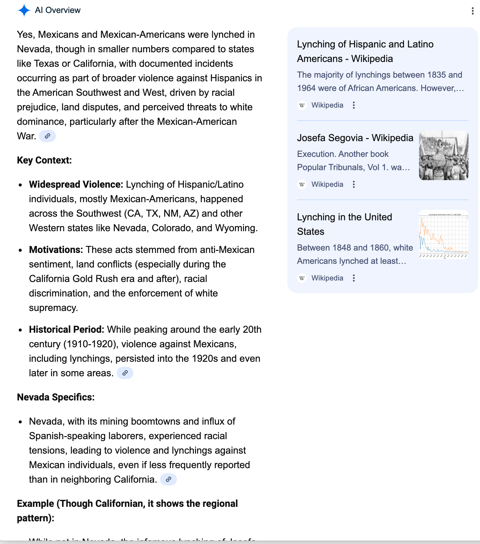 A Mexican man, Louis Ortiz, was lynched by a mob in Reno, Nevada, in September of 1891.