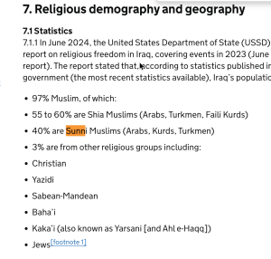 Then is is important that one knows the religious demographics of both Iraq and Iran. While Iraq is 97% Muslim, that can be further divided into 55 to 60% Shia Muslim and 40% Sunni Muslim. Iran is about 95% Muslim, but that is about 90% Shi’a Muslim and only 5% Sunni Muslim.